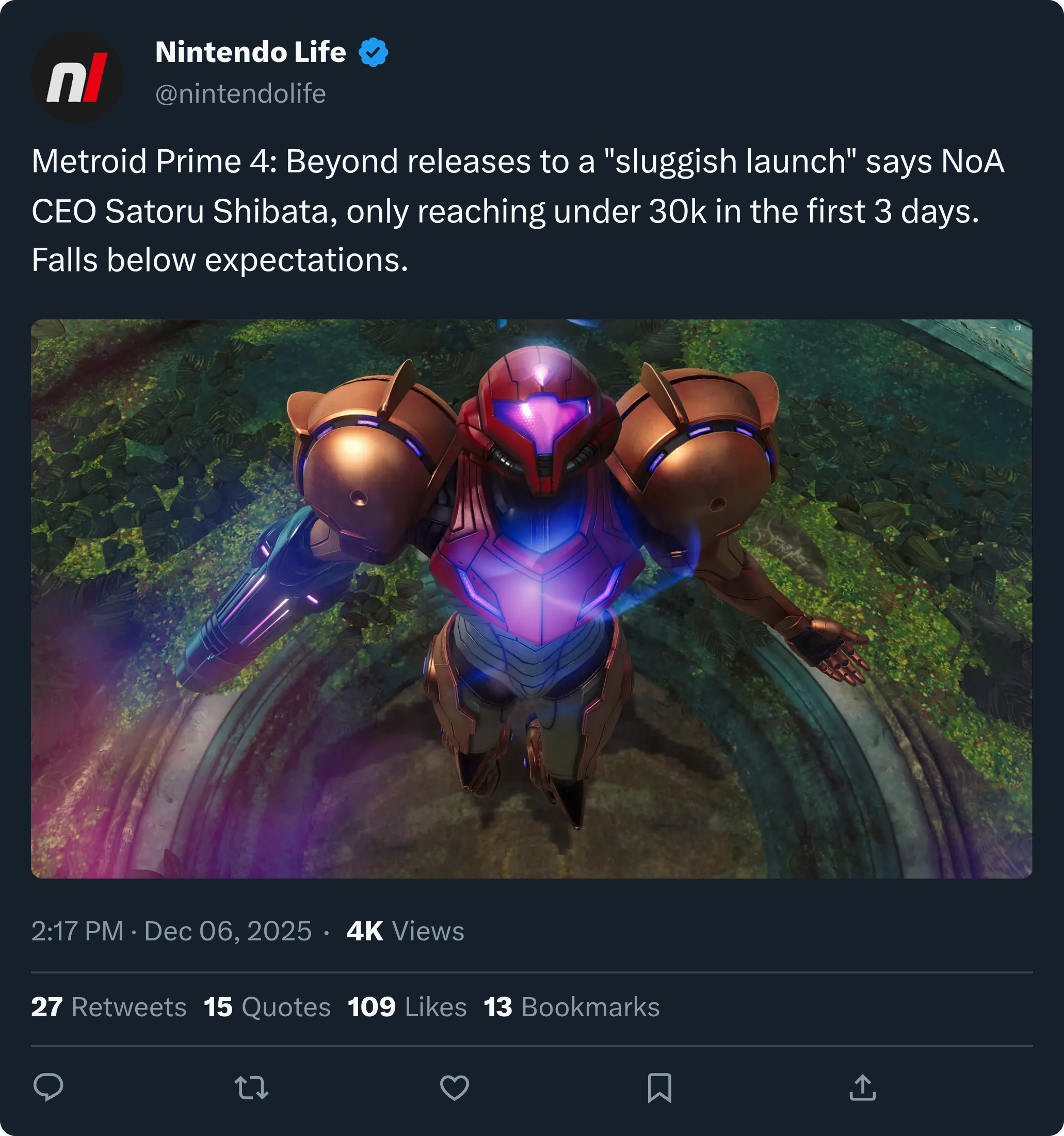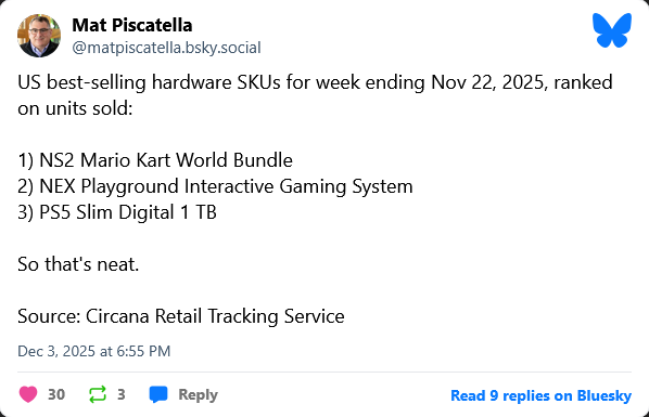 Самые продаваемые консоли в США за неделю, закончившуюся 22 ноября 2025 г.