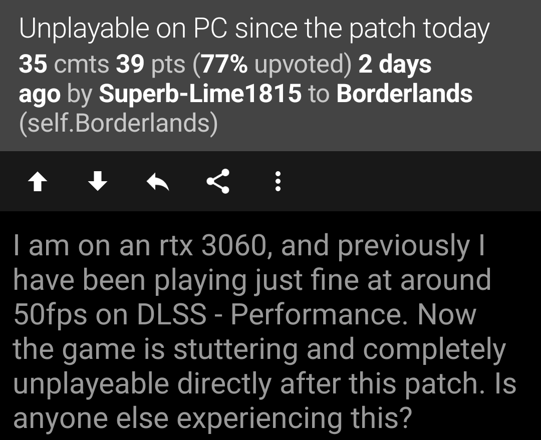 >>2546416 >тормозами Какой пиздеш. У меня 3060 и играть во многие проекты в 4к в принципе невозможно. Стартеры, падения фпс, вылеты. На консоли беру игру и знаю, она пойдет. Без ебанных танцев с бубном и прочими радостями. Чтобы увидить графику лучше, это надо постоянно держать руку на пульсе и обновлять железо под топ. Бордерленс 4 хороший пример как на оптимизацию пука просто положили хуй. Буквально.