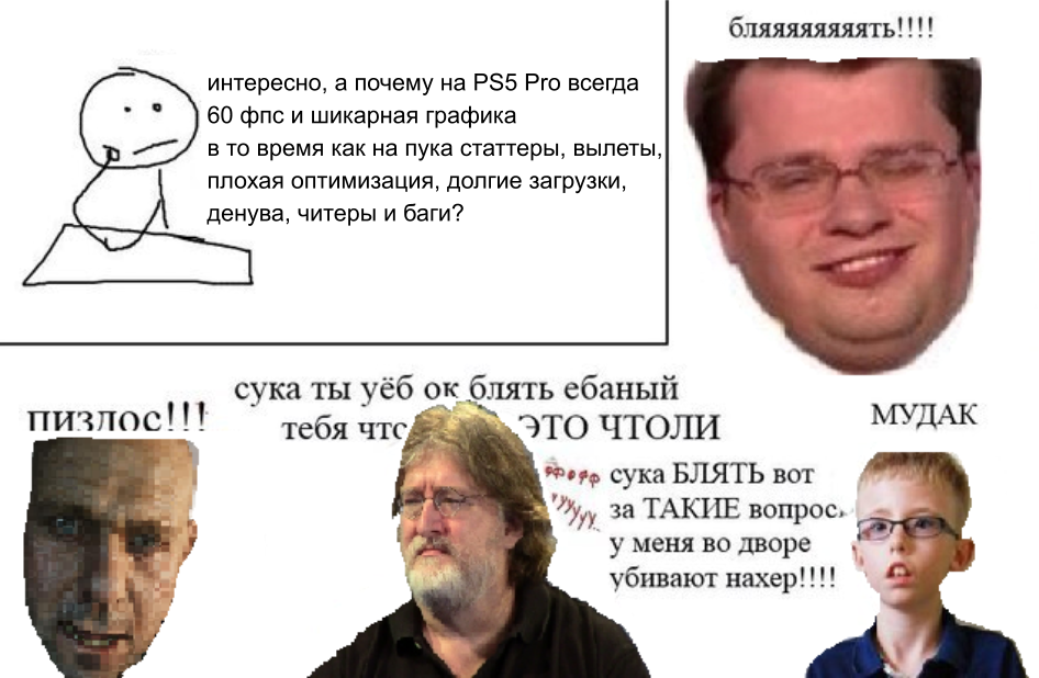 >>2548452 Так у меня есть 3060 и я знаю прекрасно, что это картофельная карта которая пердит в анрило винчиках даже в фулл хд, что приходится ставить длсс на производительность или высокую производительность. Даже и не близко картинка пс5, уж тем более не как не лучше. Наброски про игры сони, рассказывай своим долбаебами собратоми по пука вместе с боевой картинкой. Меня очень устраивает Сони, начиная с пс1. Как я не старался играть на пука, это не для меня. Крутить ползунки, компиляция шйдеров, стартеры и вечное обновление железа, так как на пука все быстро превращается в тыкву. Плюс я играю в экзы в момент выхода, а не жду годами когда портируют что-то. Но каждый выбирает свой путь потребления. Вон в вегаче вечное нытье, игр нет, одно говно, индустрия все, раньше было лучше, играю только в инди. Такое чувство, что собрались не игроки, а хейтерки игр. Напоминают пенсов, вечно недовольные маразматики.
