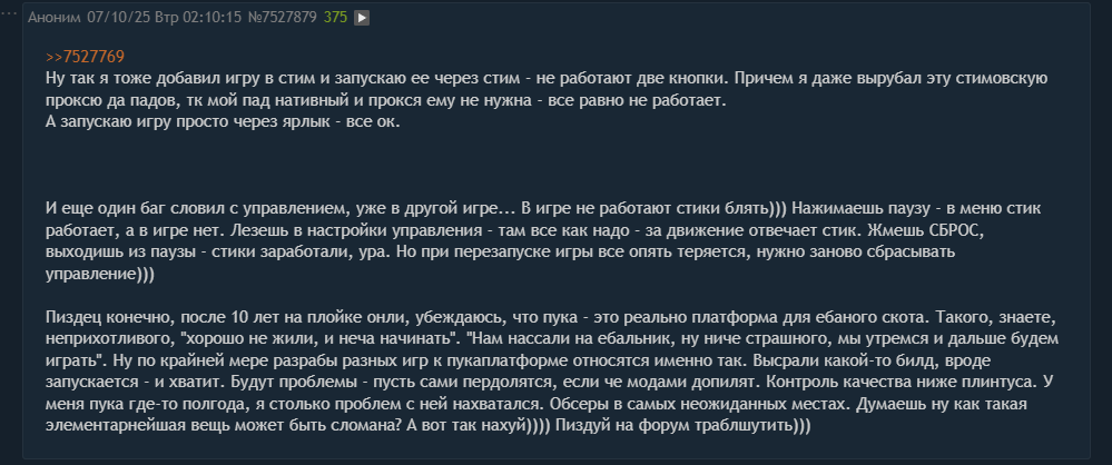 Мастеррасовый экспириенс из соседнего треда. То кнопки не работают, то стики. Консольщики, у вас бывало такое, что в игре тупо не работает управление? Что? Даже не можете себе такое представить? А вот на пука такое вполне возможно! Самое смищное, что сейчас пука-бомжи начнут это дефать.