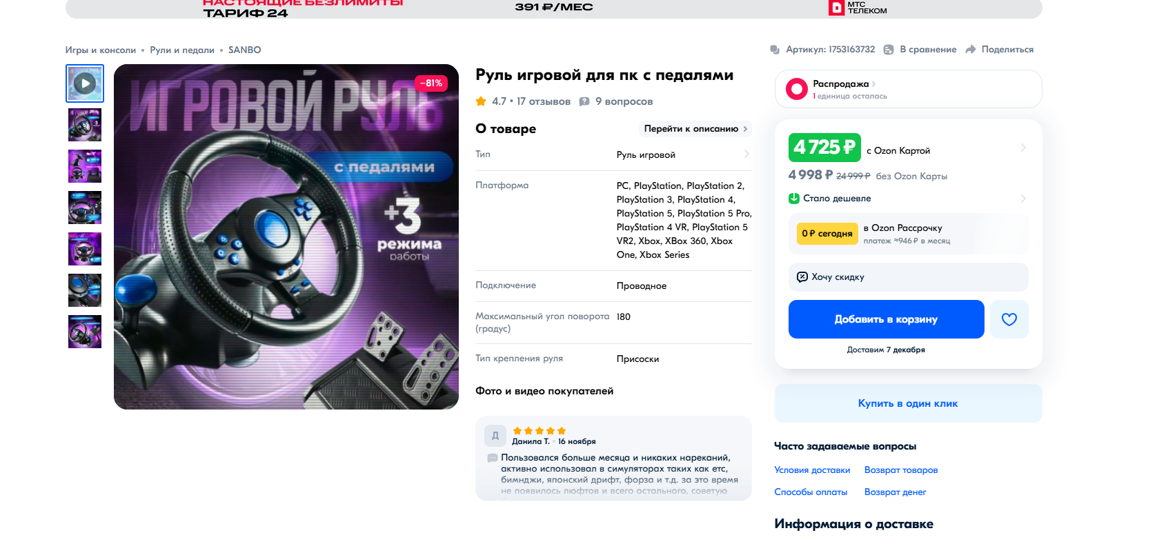 Я за 1699 рублей брал. Вот только не пойму может сама карта пополнения "тухлая". Хотя деньги с нее списались... Вот думаю, надо ли пробовать с другими картами пополнения.