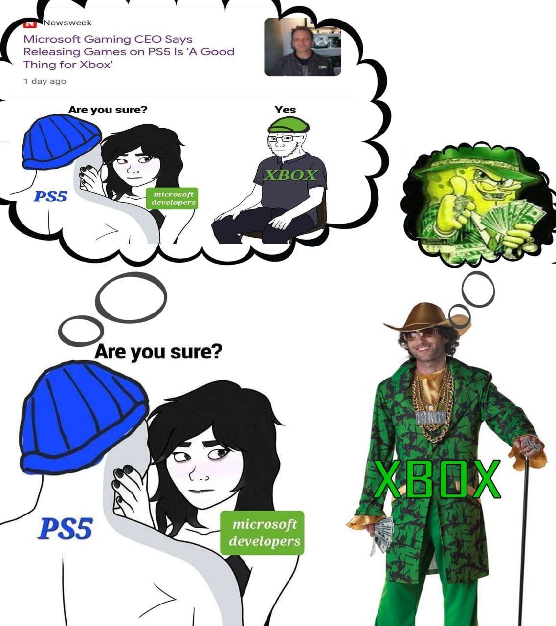 >>2478918 >ебет санкциями В остальном мире то не ебет, и пс5 обходит сериес по продажам примерно 5:1. Сейчас отрыв еще больше станет. Кстати в европе жалуются на дефицит боксов и отсутствие скидок. Будто самим майкам уже поебать на продажи консолей. Теперь стратегия это геймпасс на всех устройствах и выпуск своих игр везде, где только можно.