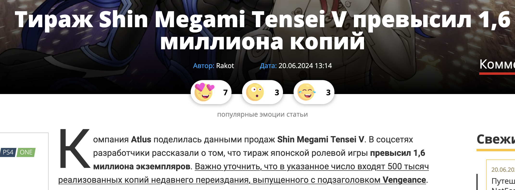 - Вышел тизер ремейка Persona 4 - Persona 4 Revival. Пока что выглядит как кал, но надеемся на лучшее. https://youtu.be/Tcrb4s9ecd4?si=OEGNoWB8uQh1KKhy - Гача-помойка Persona 5: The Phantom X выйдет на глобальный рынок 26 июня 2025 года.