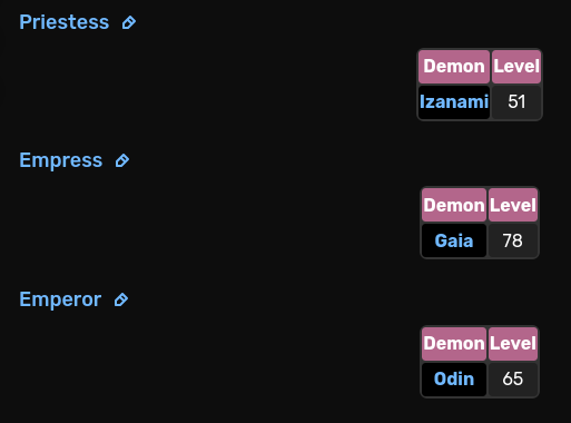 >https://megamitensei.fandom.com/wiki/List_of_Persona_2:_Eternal_Punishment_Demons При этом левел младших персон в этих арканах ощутимо ниже, и к моменту возможности получения этих карт естественным путём (т.е. через переговоры с демонами) крафтить их уже не будет никакого смысла - зачем мне 30лвл персона в эндгейме? Возможно, странный вопрос, но может есть альтернативный способ получить карты? Не считая заказать у артиста - там зачастую солидное трёхзначное число карт требуется, ебанёшься столько пустых собирать же.