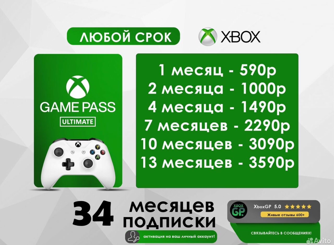 Про геймпасс Подписка на каталог из 400+ игр. Весь каталог: https://gamepassport.net (по умолчанию выбраны игры для Xbox One). Есть три вида подписки: обычная, ПК-версия и Ultimate. Лучше всего брать Ultimate, который включает в себя все фичи обычного геймпасса, голда, EA Play, а также предоставляет доступ к геймпассу на ПК. Купить можно на https://ggsel.net/catalog/ultimate или https://plati.market/games/xbox-game-pass-live-gold/192 Актуальная стоимость — всё ещё колеблется после недавнего подорожания EA Play. У проверенных продавцов цена на Game Pass Ultimate от 6000р за 13 месяцев. (it's over) Чаще всего для активации придётся дать продавцу данные аккаунта, это нормально, также можно создать свежий акк специально для подписки. После логина на консоли играть можно с основного аккаунта, сейвы, онлайн и достижения будут работать. Если есть турецкая карта - покупаем в турецком сторе 1 месяц Ultimate за 209 лир (~650р) и включаем автопродление. Новый выгодный способ оформления Game Pass - через индийский Amazon и конвертацию кодов Game Pass Core в Ultimate, нужна зарубежная карта. Цена - 6.5к~ за 25 месяцев подписки.