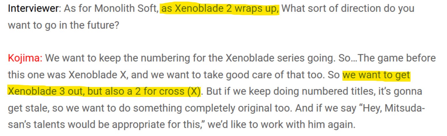 " [I'm] grateful for the game's positive reputation, [but I and my team] didn't set out to make Xenoblade Chronicles into the company's magnum opus. It was made to be an experiment" - Tetsuya Takahashi, Interview with Tetsuya Takahashi (Nintendo Power, 2012)