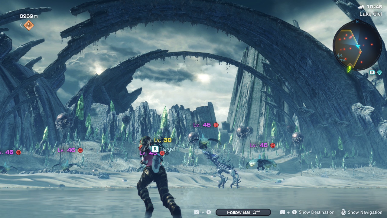 Продолжаю бегать по Мире. Главный плюс Xenoblade Х в том что весь мир красивый как обычно у монолитов, так ещё и бесшовный. Нет загрузок между переходами в биомах в отличие от трилогии (во второй части обосновано тем что все локации это отдельные титаны, в 1й тем что игра старая, а вот в 3й видимо ради оптимизации отказались от бесшовного мира, хотя пейзажи там менее живописные как по мне).
