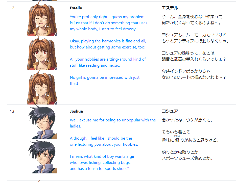 В японском масскульте какие-то конкретные речевые маркеры настолько привязаны к соответствующим эмоциям, что когда японец читает, как 16-битный спрайт из игры для SNES произносит «ярэ-ярэ», то он даже без звука и картинки понимает, что персонаж вздыхает, закрыв глаза. В других языках другой «лексический шифр» и не всё-так просто передать в переводе, как «ярэ-ярэ», поэтому иногда приходится городить огород, чтобы одними только словами как-то предать читателю именно ту эмоцию, которая задумывалась автором.