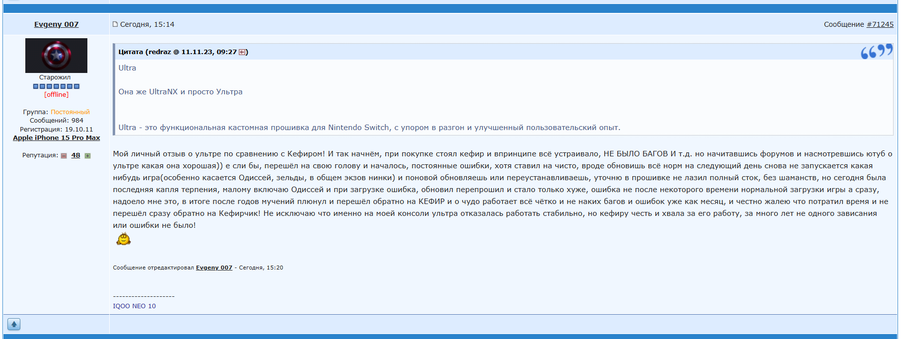 А если без шуток и сраче, откуда такое противостояние Ультры и Кефира? Купил свич, на нём Ультра. Игры не гоню особо, того функционала что есть хватает. Что такого предлагает Кефир, что бы стоило перейти?