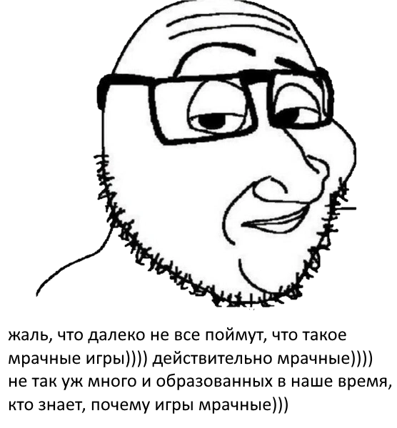 Я понимаю что с тобой бесполезно говорить, я до этого с тобой и не говорил поэтому, но решил пасту настрочить. Всё описанное выше это мрачные темы, которые вполне подходят и нашему миру. То что соседствуют с ними позитивные моменты, веселье, любовь - не делает наш мир менее мрачным, как и миры блейдов. Если бы везде была мрачнуха, а разрядки не было, все бы сошли с ума давным давно. Если ты этого не можешь понять - в тебе говорит юношеский максимализм и внутренний ребёнок. Если всё что выше описано ты не видел в игре - ты не играл в эти игры. Если ты всё понимаешь, но просто срёшь - завязывай, заебал.