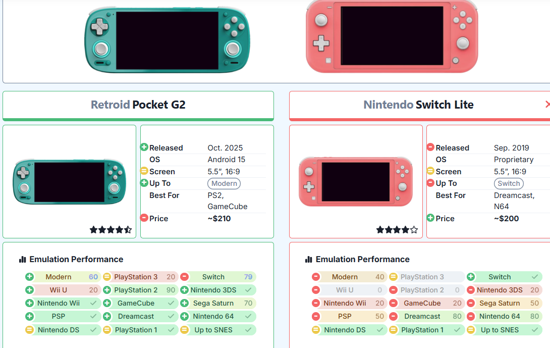 Свищ выезжает за счёт имеющихся игр. Утверждать что ретроид покет г2 является полноценной заменой свища не получится, и говорить что свищ будет полноценной заменой Г2 тоже, хотябы из-за эмуляции PS2.