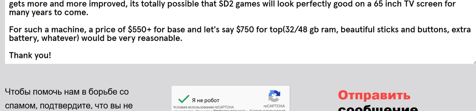>>2572415 Здраствуйте. Я, Кирилл. Хотел бы чтобы вы сделали устройство, Стим Дэк 2 суть такова… Пользователь может использовать его как портативку, консоль, настольный ПК. И если пользователь играет в портативку то экран 9 дюймов 240 гц ОЛЕД, процессор мощный, во всех играх ультра настройки, держит 6 часов. Можно заменять им все сразу...