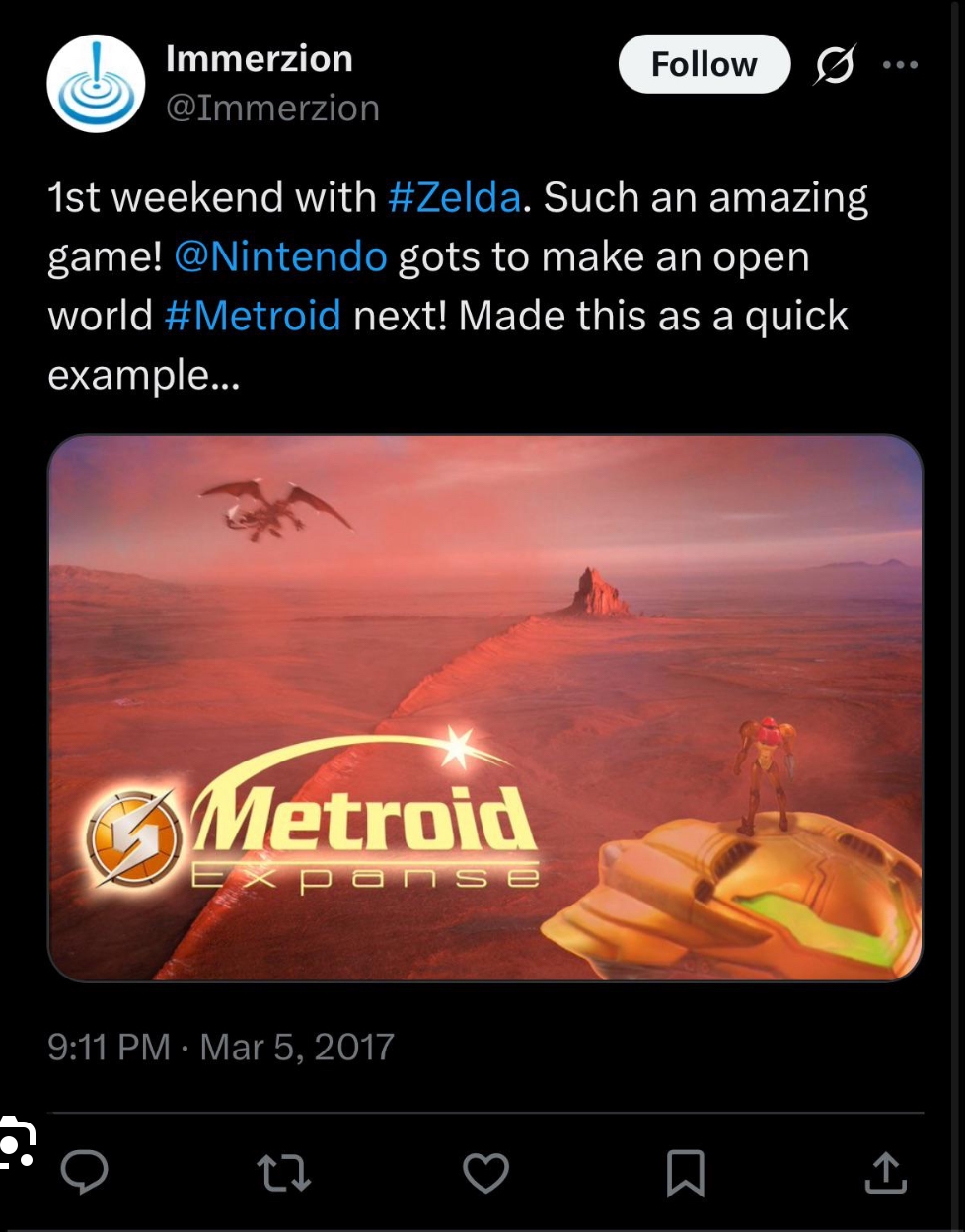 📌 От откликов фанатов к игре •На ранних этапах разработки команда заметила, что многие игроки ожидают «Metroid в стиле открытого мира», отчасти из-за огромного влияния The Legend of Zelda: Breath of the Wild.