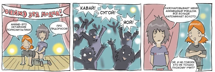 Так вот - я мало что помню из того, что там было написано, но, почему-то, всегда стояло чувство какой-то неправильности, гадливости и отвращения насчет того, правильно ли я понимаю аниме и японские игры (я уже тогда был виабу). Будто написанное настолько расходилось с моим видением, что перезагружало мозг. Но в силу схикованности и нулевой социалочки, я не обладал критическим мышлением к авторам, а винил себя.