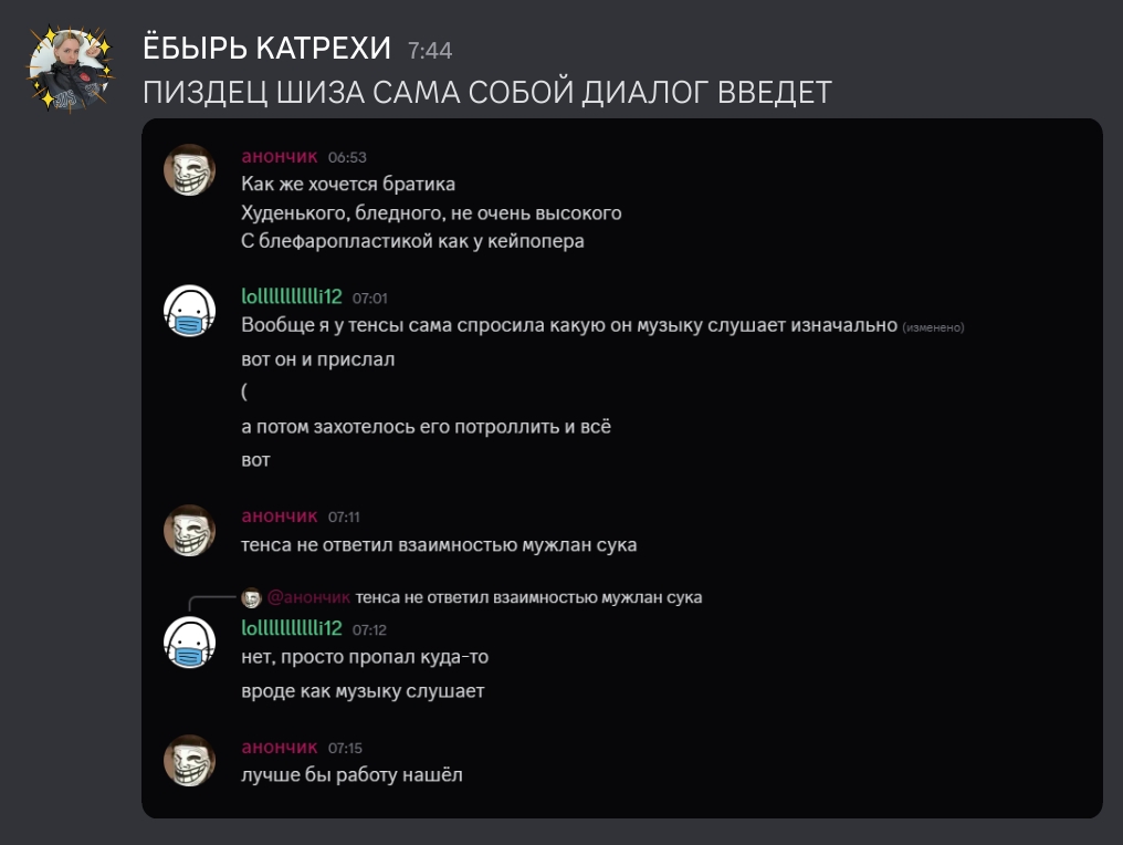 Нам нужны только добрые и позитивные и интересные ребята!😊👍🎉 ❗Остальных просьба не обижаться и пройти мимо, иначе сами себе плохо сделаете.😤 ⛔ Обиженные инцелы и двачеры сразу пойдут в мут🚪🚫 или будут игнорится🙈🙉🙊🚫