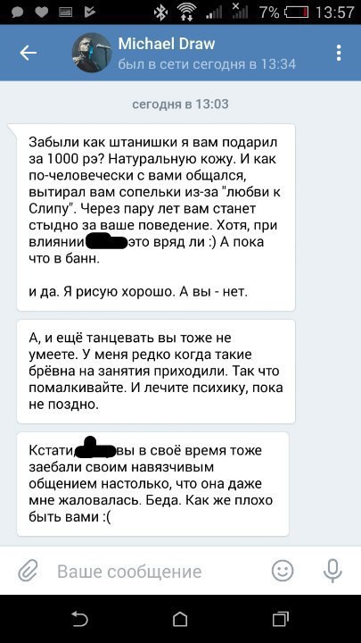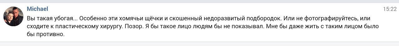Че, прищемила вас тетя Марина? Не стыдно? Как тараканы по углам разбежались, место теперь найти не можете, по всему вк вас Марина пихардом гоняет вместо тапка. Жалкое зрелище.