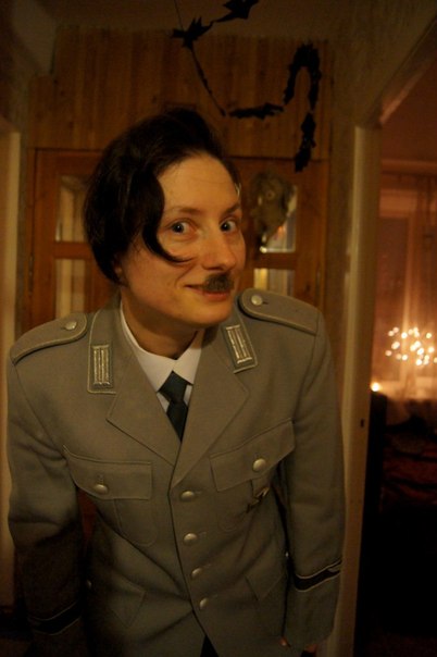 Я надела штаны и мужскую рубаху. А потом мы долбились с гитаристом все в сраку. Малевали мы краской наши юные рожи, Чтоб на группу рамштайн мы так были похожи.