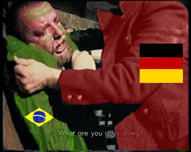 Последние фразы рассказчика потонули в свисте вертолётных лопастей. Теперь односельчане смогли точно убедиться, что водка тут точно была не причём. В плохой слышимости был виноват военный вертолёт с эмблемами ВВС Российской Федерации, появившийся с востока и спешно шедший на посадку прямо к футбольному полю. В бликах уходящего солнца блеснул фюзеляж с боевой раскраской Севастопольского флота. Десантный люк успел распахнуться ещё до того, как шасси коснулись земли. Оттуда выпрыгнули двое десантников в полной боевой выкладке и заняли позиции рядом с машиной. А машина эта, тем временем, не спешила глушить моторы. Все окружающие с интересом наблюдали за происходящим. Мальчишки, поначалу бросившиеся в рассыпную, начали постепенно возвращаться на поле, с восторгом разглядывая крылатую машину и стоявших у неё бойцов. Из домов на краю села стали выходить любопытные жители. Вслед за десантниками на землю сошёл ещё один военный. Это был худощавый полковник в потёртой полевой форме, смотревшийся несколько блёкло на фоне собственных гвардейцев. Твёрдым и решительным шагом полковник направился к застывшему в воротах Пахому. – И это лучший офицер запаса, блядь! – гнусавым, но очень громким голосом заговорил он на ходу. - Ему Родина дала квартиру в Сочи – живи! Живи в Сочи, блядь! Не хочу! Хочу водяру жрать в Жопосранске! С этими словами он схватил грузное тело горе-вратаря за шиворот и потащил его к вертолёту. – Давай! На работу! Вылезай! На работу пошёл! Втолкнув даже не пытающегося сопротивляться Пахома внутрь вертолёта, он скрылся в десантном люке вслед за ним. Туда же, следуя за командиром, залезли бойцы с автоматами. Пилот в эту же секунду включил не успевшие остановиться винты на полный оборот, и крылатый монстр покинул футбольное поле так же стремительно, как и появился. Ещё несколько минут молодёжь стояла, разинув рты, неподвижно и провожала взглядом вертолёт, пытаясь понять произошедшее. Десятого игрока с ними больше не было. И мало кто из них догадывался о том, что его они не увидят больше никогда в своей жизни. Один из собутыльников, который свято верил в героичность пузатого вратаря, многозначительно взглянул на своего товарища. Тот презрительно сплюнул и резво заковылял прочь из-за стола.
