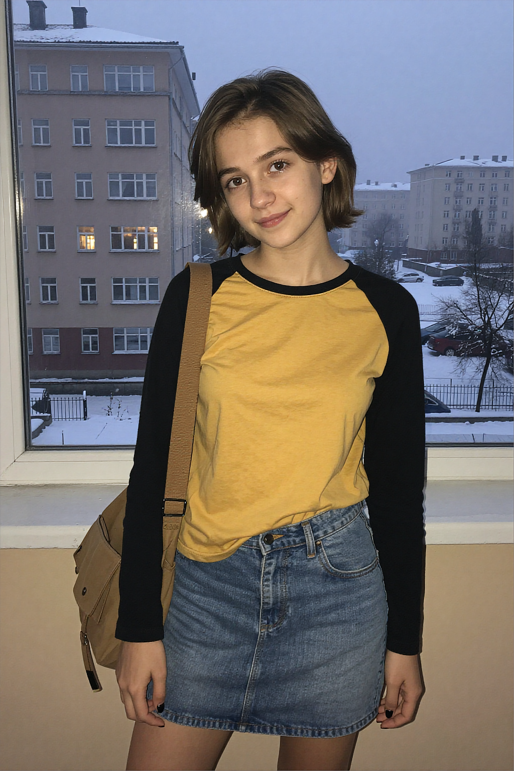 Я сейчас ходил гулять и встретил ирл-Мисаки. Она стояла передо мной на светофоре, и сначала я видел её только со спины. У неё была точно такая же футболка, как у Мисаки в аниме, с рукавами реглан. Только основание было не жёлтым, а белым. Причёска была тоже как у Мисаки, только волосы были русыми, и они более свободно болтались в разные стороны. Вместо миниюбки на ней были длинные черные джинсы с очень большими подворотами.