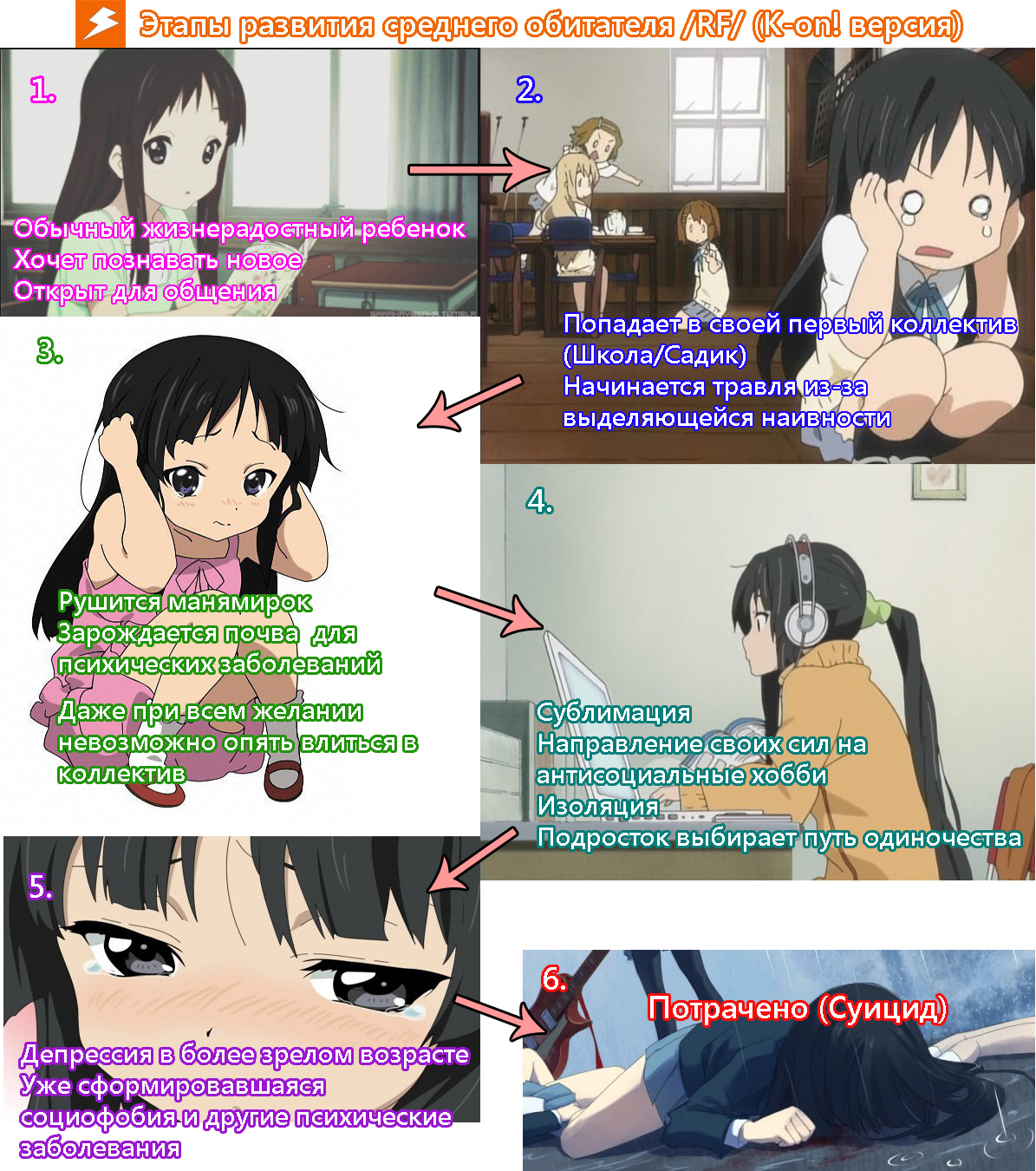 Забыл совсем Пункт 4 ну вообще ни в какие ворота. > Неважно, какой характер персонаж имеет в аниме -даже если тян жестокая убийца и расчленяет людей На самом деле очень важно. Те кто знают этого персонажа непременно вытащат связанные с ним эмоции страха, ужаса и отвращения.