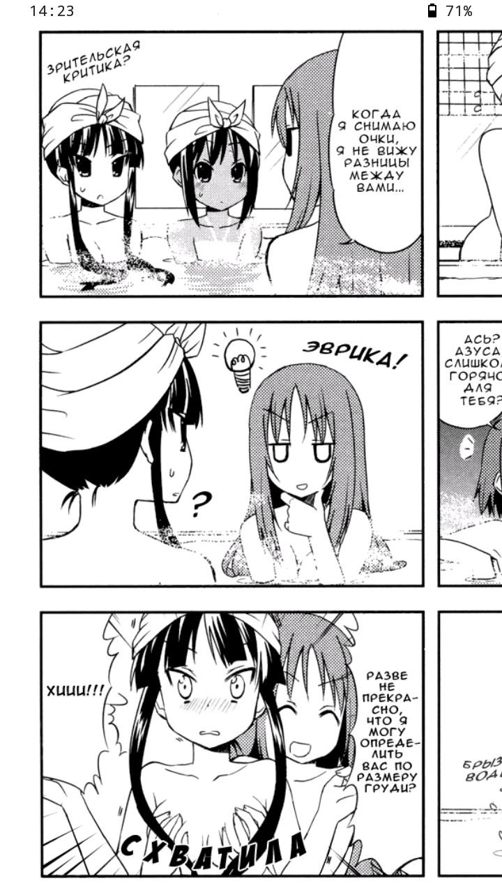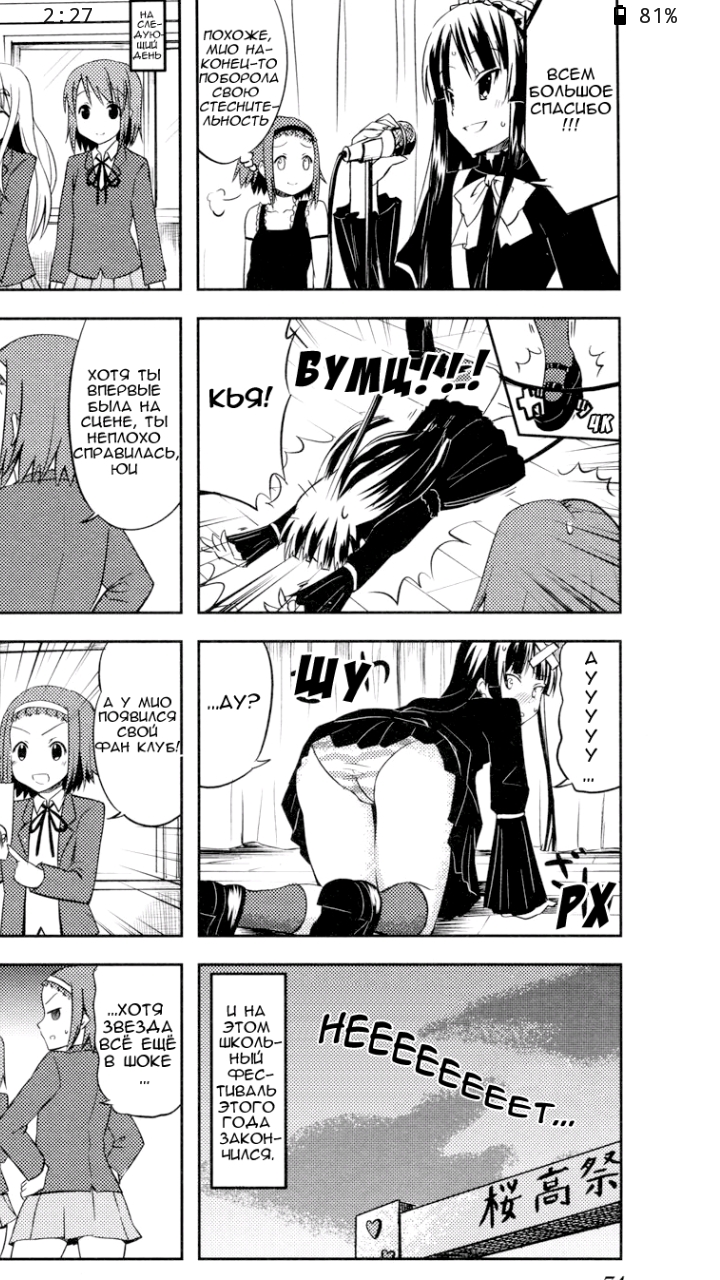 Я созрел для того, чтобы пересмотреть кейон во второй раз. Боялся, что из-за того, что уже смотрел, будет не так интересно. Боялся, что, набрав в свою копилку ещё несколько десятков тайтлов, начну замечать минусы кейона, разонравится, будет скучно. Не, нифига, всё так же не отпускает, смог остановиться только после двенадцатой серии подряд. Какие же они клёвые. Почему я не анимешная девочка со способностями к музыке? Уже давно хочу в группу как у них, но осознаю, что это вряд ли произойдёт. Муги говорила, что не против этих отношений! Я и забыл, что там такое было! Вообще мне стало немного неловко оттого, что я когда-то представлял себе шиппинг между ними. Там так лампово, что и без этого самого всё отлично и няшно. Просто немного забываешь об этом если долго не пересматриваешь.