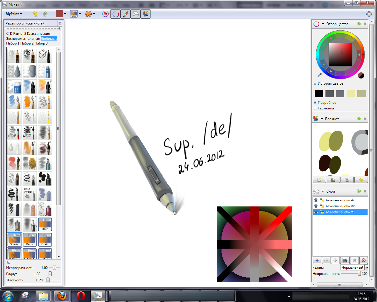 Хорошо было бы, чтобы программа умела в flow и ФШ-лайк opacity, для кистей.