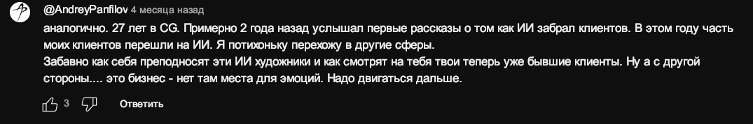 как у любого уважающего себя мужчины — затряслись руки, коленки согнулись, слезы подступили. сначала от комментария с пика, потом — от понимания, что люди действительно могут сместить мойшенов ИИшками.