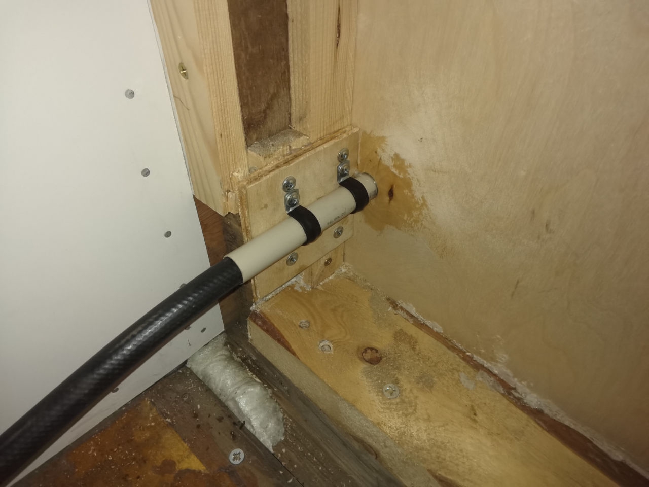 Стена за кухонным уголком из 15й шпунтованной osb, утеплил 100мм пенопластом. Дом целиком пока не утеплен. Но щелей в доме нет - все щели я тщательно загерметизировал. Сейчас я сплю на полу с мая, так как выкинул старый диван, который уже сыпался и мешал доделать пол. В доме живу вторую зиму, плесень была в углах на полу, где не было ни фанеры, ни osb. Там, где фанера переходит в osb, плесени нет. На днях решил установить плинтус и вогнал в него тёплый кабель. Результат отличный. Сам придумал.