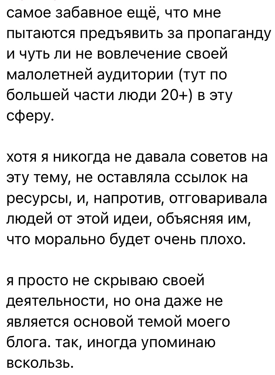 >>6317249 (OP) Приехала в москву с парнем, устроилась на работу, но отношения быстро ушли в ноль с его стороны.Съехала к коллеге по работе, все это время по классике начальник намекал о встречах, я морозилась, а потом чо то решила попробовать. Да постарше прилично, но сразу предложил с кв помогать ну и отношение норм ко мне. Так и жила себе, какие то отношения были еще но все такие себе. С ним продолжали года 3-4, но чото надоели встречи - сначал по 3 раза в неделю, потом по пару раз в месяц. Он женат, но как бы пофигу его проблемы, но смешно как он у меня спрашивал что купить жене на 8 марта, ноый год и т.д. А так просто постепенно сошло на нет с моей стороны все это, и он еще годик помогал с кв, ну такое себе просто временный период, годами так жить не кайф вообще