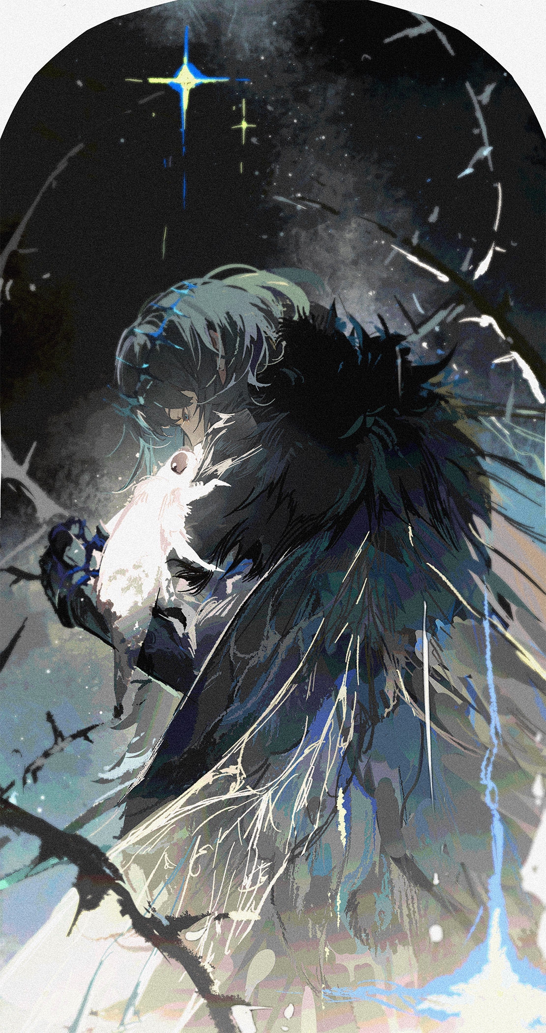 у нас дожди недавно были и я вспомнила, как мы полуросликами сидели в беседке и рассказывали друг другу крипи пасты, словила такой вайб, хотела передать. А потом меня переклинило на жуть и хтонь православной глубинки, ну рил чего только стоят наши кладбища. И получилось вот так