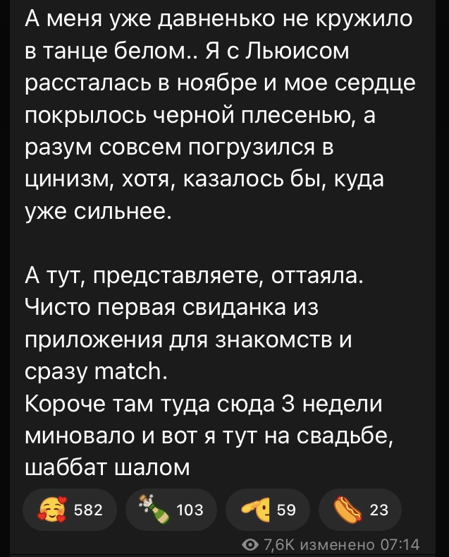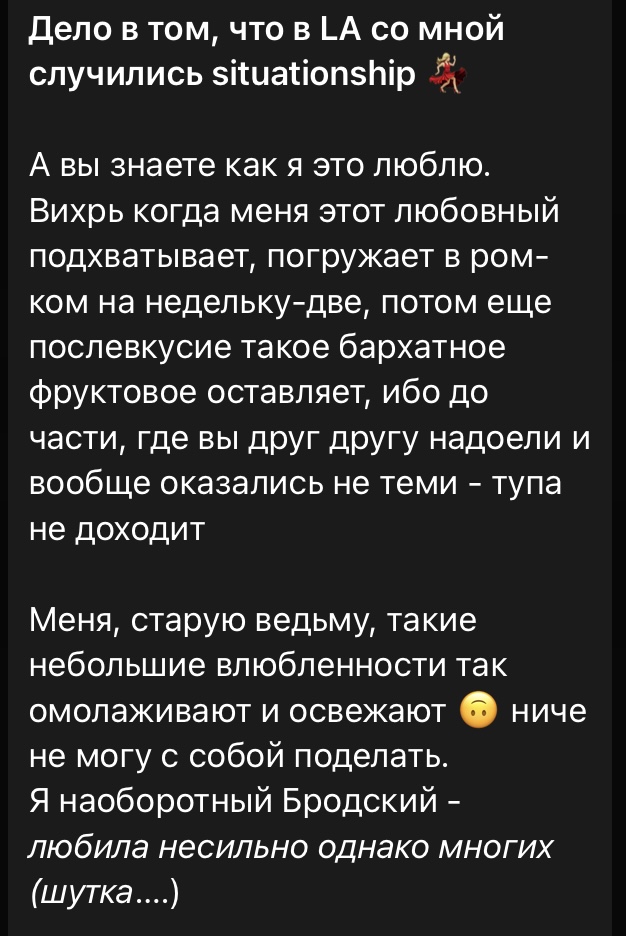 >>6175842 Я недавно видела её с букетом цветов в Москве, в центре, она счастливая бежала в сторону какого-то жк, может, в кофейню. С букетом вышла из такси, то есть, шла дарить кому-то. Это было может месяц назад, узнала её из-за треда, так не слежу