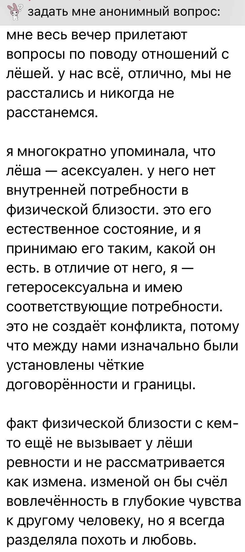 Нет в нет глубины-мудрости какой-то и интересной личности, просто уж внешность и простота подкупает годами всех Даже про вопрос с Бледным можно ответить развернуто, а не «ну да давно дружим ммм»..да ну, неужели Хорошие вопросы проскипала, а такие болванские отметила