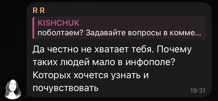 Чет у меня теперь полное разочарование к Кищук и ее ебанаства, свою жизнь не устроила за границей и сыну не дала возможность Дальше ответы ещё инфантильнее будут