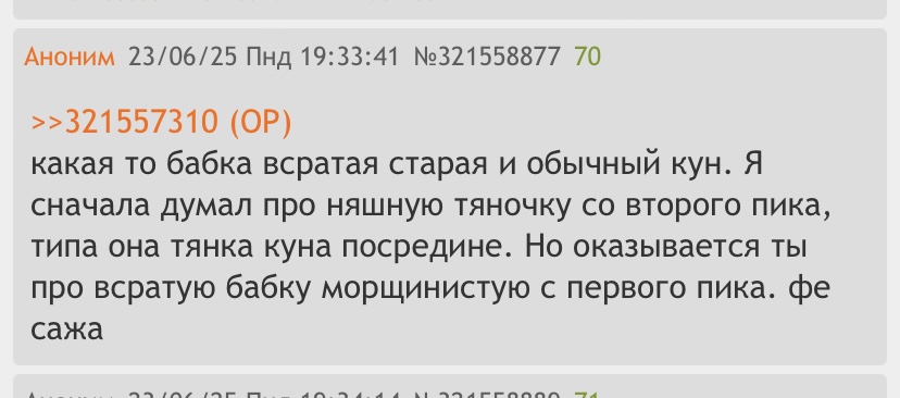 >>6178326 Я, кстати, даже удивилась насколько шарящей по тем меркам была синусоида. Тут публиковали её старую страничку вк, я даже нашла её и пролистала. У неё были модные луки для тех лет, она ещё и за роцк-группы шарила. И наверное у неё первой во всём селе появился твитор. Это сейчас она в бабкинские луки наряжается, а тогда была модной.