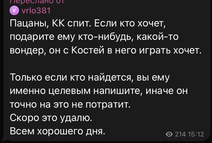 >>6177926 Ахаха да, они же всеми силами стараются не спалить где они >>6177923 Так они деньги клянчат чисто как дети. Капризные, избалованные дети 40лвл. Дайте легче чтобы лишний раз посмотреть на мою жирную рожу(((( и не критикуйте меня!!! Я стараюсь, за старания надо платить!!