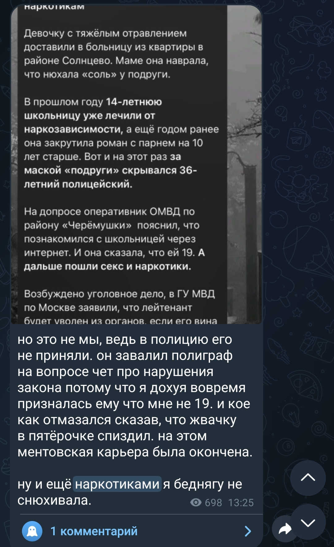 >>6178268 > запрещали все, чтобы не дай бог илюхой не выросла,типа там где бритва для ног, там и проституция недалеко Даа, в моей школе из-за таких мам были грандиозные разборки. В одном углу ринга были дочки таких мамок, которые клеймили илюхами всех тян, которые красили ногти, брили подмышки и пользовались духами. «Мама сказала, что так делают только те, кто спит с мужчинами за деньги!». В другом углу ринга были промытые штанохранительством дочки гламурных мамок, которые считали своей главной ценностью внешность и гнобили остальных, что на них никто из мужчин не посмотрит. Тоже «такмамаскозала». Помню некоторым даже запрещали общаться с девочкой, если она тонаком прыщи замазывает. А то обучит проституции.