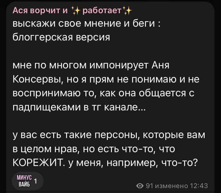 >>6182690 Вот сейм. Несмотря на все проебы и тупость, мне сораби нравится очень. Будь я мужлом, то очень бы хотела себе такую тянку. Да, даже сейчас она пошатывает мою гетеросексуальность, лол. Кажется, что от неё очень вкусно пахнет и вайб такой лёгкий. Прям ассоциации той самой маминой подруги, которая ходит в шубе, пьет винишко и тд. Но проблема в том, что она подстилус жёсткий. Пару лет назад была жестко против фемок, причём на гране шизы, когда пыталась что-то вкидывать против жертв скопинского маньяка, но это если мне память не изменяет. В общем, мальсики хорошие, а девочки твари. Сейчас уже получше, но она все ещё слишком высокого мнения о мужчинах.