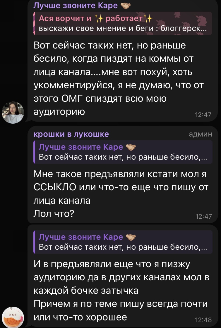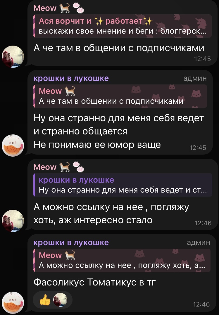 >>6181500 Ору. Она же постоянно её посты в телеге комментировала, а потом под одним из написала про то что употребляет, за что Консерва отчитала её и ещё одну подписчицу. Обидели Бубу( >>6156676 →