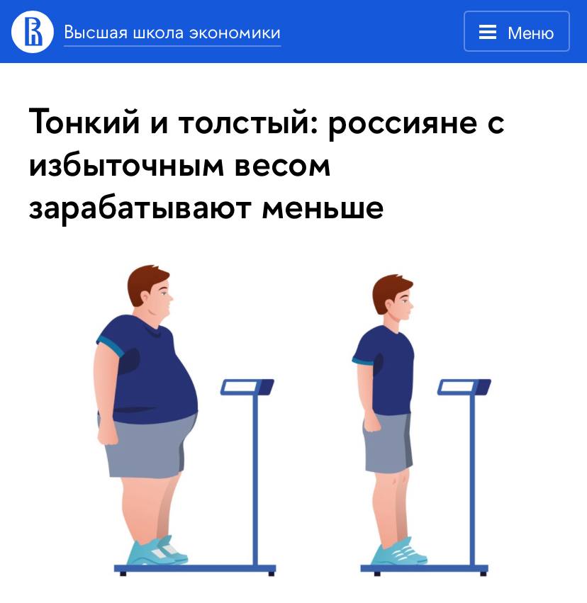 Толстые россияне зарабатывают меньше худых — исследование ВШЭ