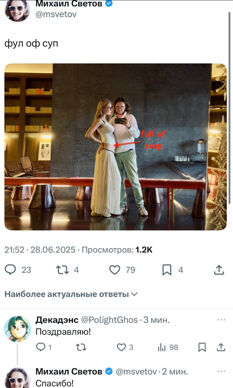 >>6182015 >Че думаете? Надеюсь, они замутят, мне кажется будут хорошей парой. Путешествовать и угорать вместе, контент пилить и т.д. С кабанихой вилка прям очевидно загнивала.