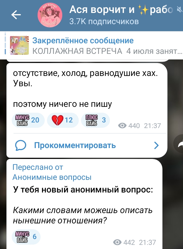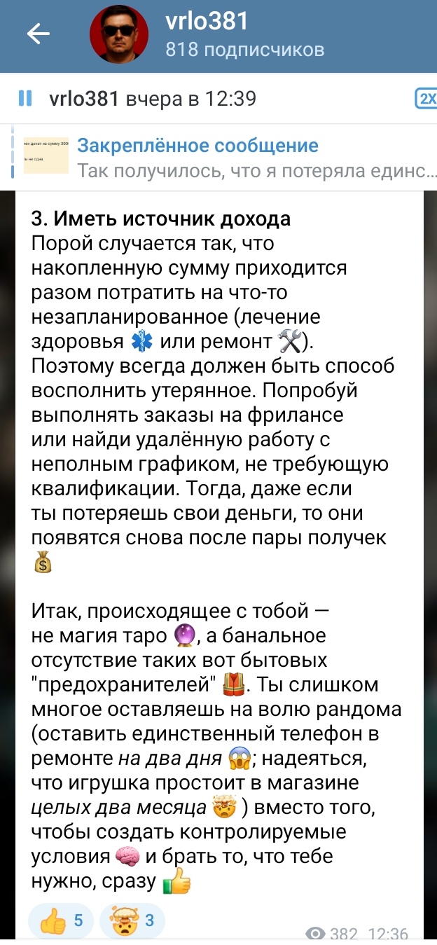 У них в семье все братья вышли за женщин беднее себя. Они и квартиры сами покупали, и машины, и жён по знакомству пристраивали на непыльные госдолжности. Ну и всякие поездки, дорогие подарки дарили тоже со своих денег. Все развелись уже. И мамка с бабкой постоянно хуесосили этих женщин, типа вот мы такие бохатые, всяких нищучек содержим. А со мной так не получилось, потому что у меня всё есть. У двух еблуш сразу фрустрация началась. В итоге муж послал их обеих нахуй и не общается. Вообще любое общение, где тебя пытаются принизить, нужно прекращать. Даже если это родственники, что уж о всяких там «друзьях» говорить.