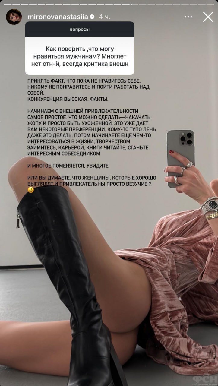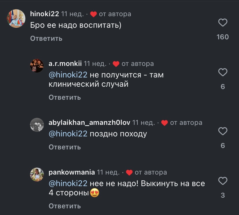 >>6185185 Сис, спасибо. В ахуе конечно. Она такая очаровательная на видео. И тут такое >>6185339 Я думаю ей дико страшно, что он кого-то захочет кроме нее и будет ей изменять. Что променяет кого-то на нее. Для нее это тоже инвистиция >>6185251 Вот я тоже в ахуе сижу, но подумала "представляю как дед кайфует не от бимбы любовницы, а от оленененка с кудряшками с медицинским образованием". Ну, некий вкус есть у старикашки