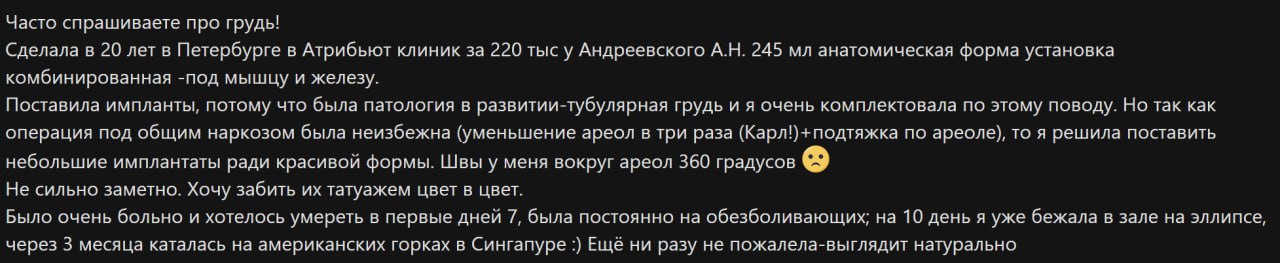 >>6183929 Да думаю реально тубулярка была, раз в столько раз уменьшали ареолы. Орнула с натуральной груди. Реально два всратых шарика, которые норм выглядят только с одного ракурса. >>6183932 Ну вряд ли ей сделали на натурально, а потом она поменяла на вот это. Помню ещё она жаловалась на плохое самочувствие и импланты как причина этого самочувствия. Некоторые тянки которые поставили импланты жалуются на симпотмы А вообще если сделала в 20, то как раз в 30 меняла на новые