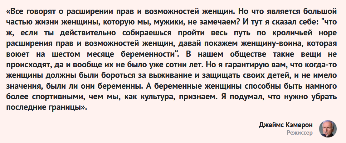 Да и Кэмерон в своем отношении к фемкам персонаж неоднозначных, хотя бы по пик.