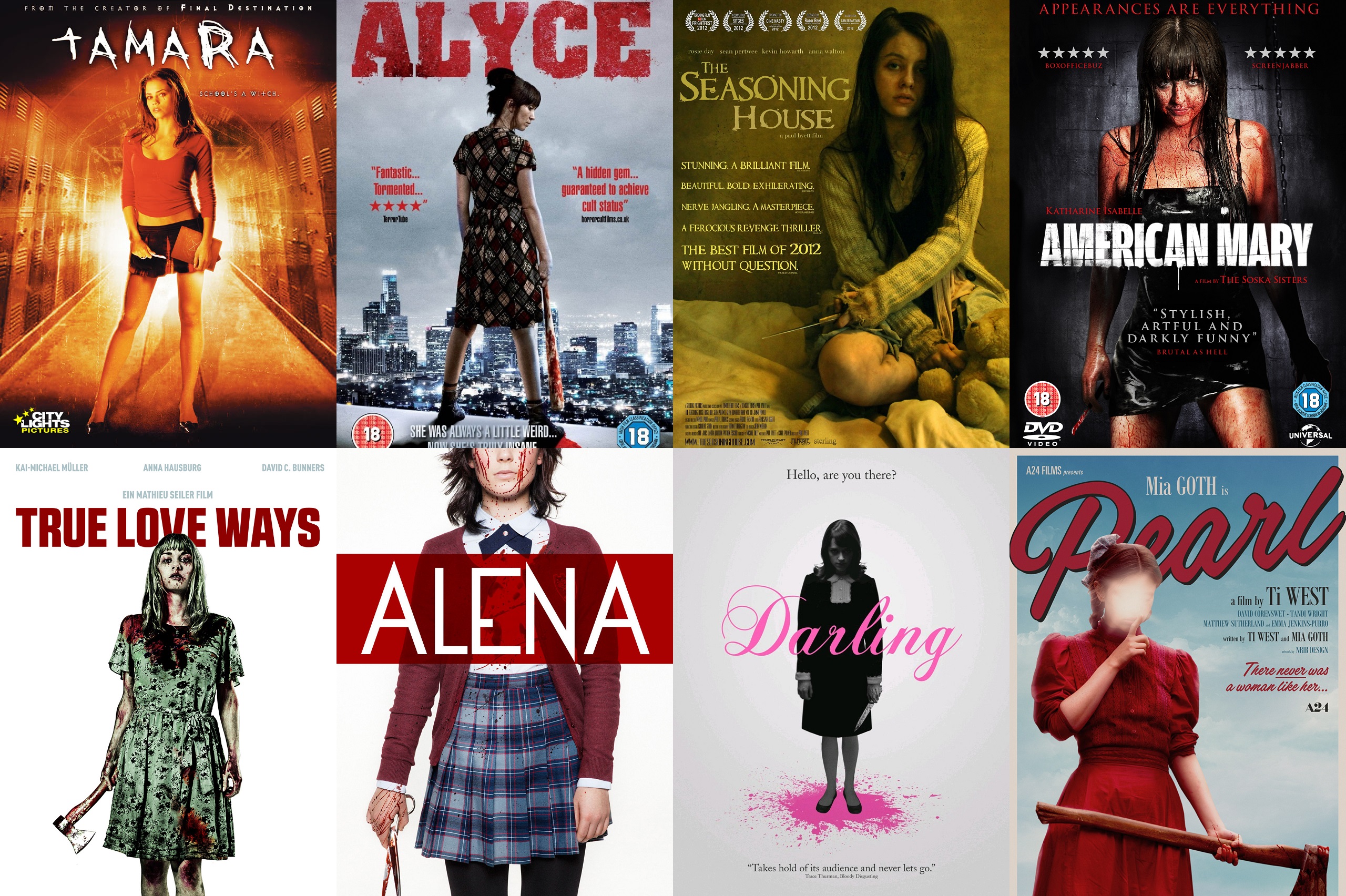 Третий ряд: The Birthday Massacre: In the Dark (музыкальное видео), 5ive Girls (2006), Alena (2015), The Seasoning House (2012).