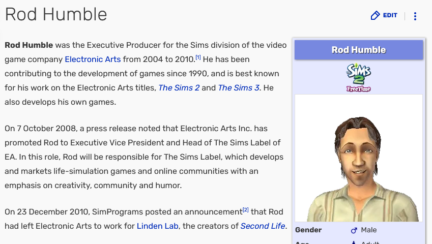 Ну и чтобы вы понимали, пикрил тот самый человек, ответственный за душевнность в двойке и тройке (в двойке он приносил компьютер в начале игры симам), перед четвёркой он уже как несколько лет не работал.