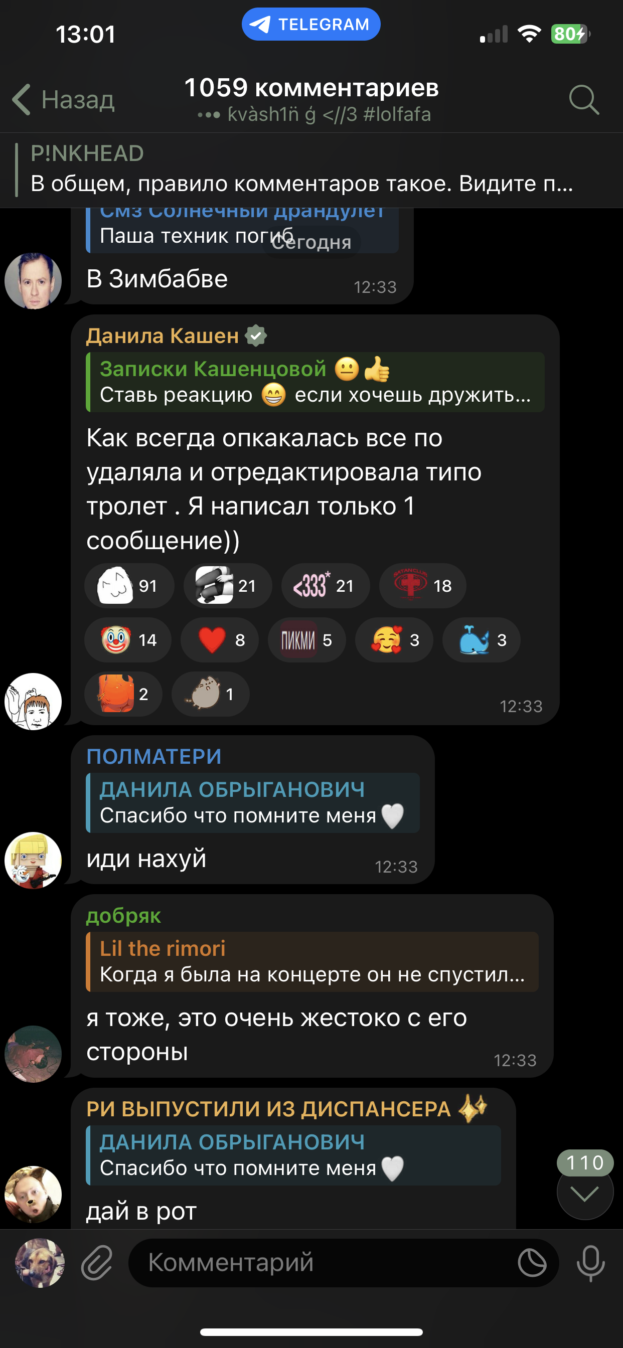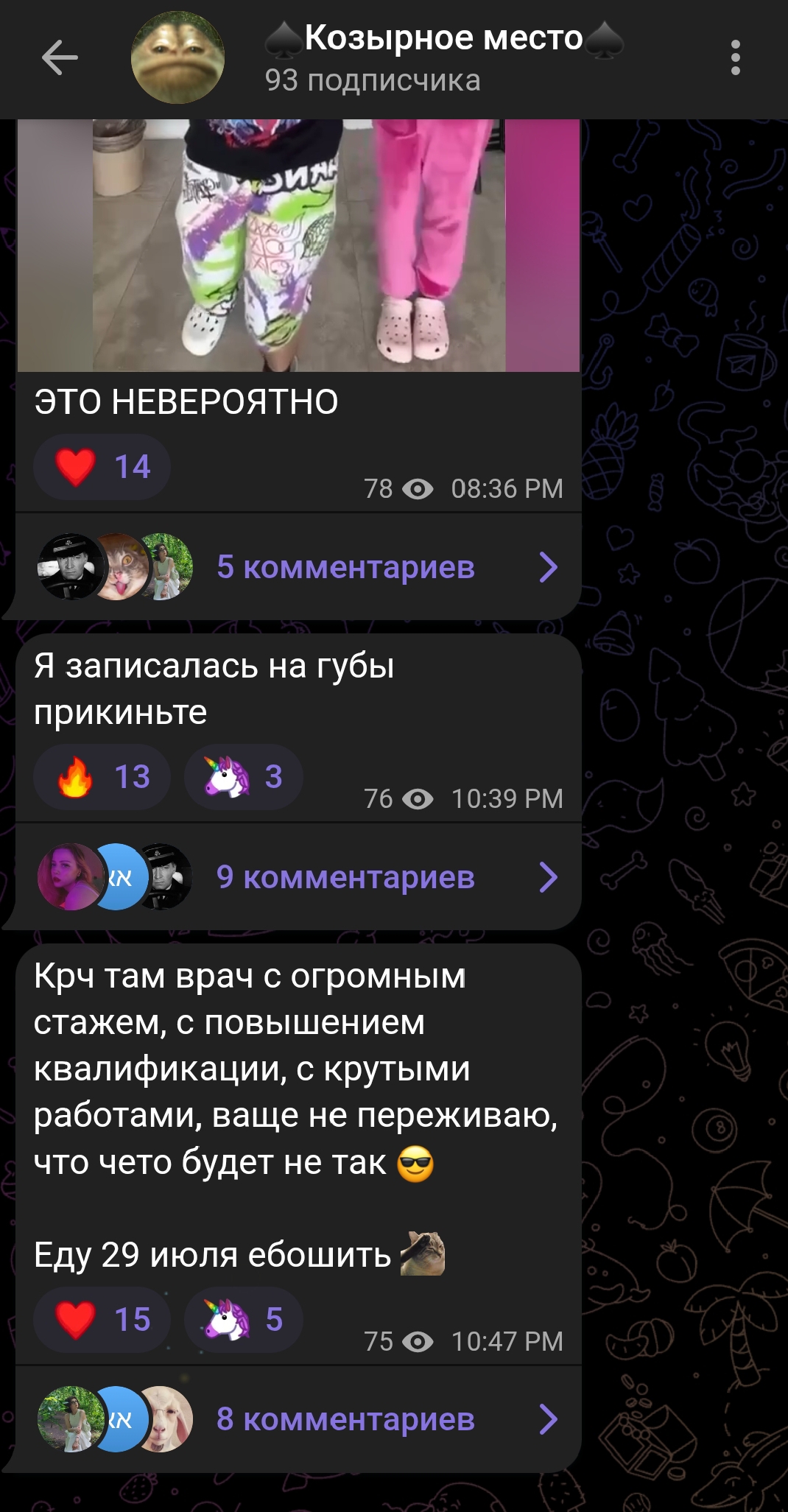 Как же он ей её шизоидное чсв поднимает своими неуравновешенными вкидами. Интересно сколько у нее реальной подписоты без хомяков кашина которых он ей после стрима привел. Только за их счет и держится в этом мире. Понимаю жан лучше 14к денег из банка приколов чем 100 руб реальных. Как-то важнее себя ощущаешь при твоем полном понимании что ты сама столько не наберешь без таких же поехавших и тт.