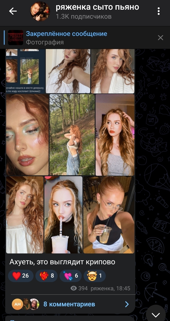 действительно если когда эту тян только принесли, то было забавно с шлюмки и ее плагиата, то теперь это больше крипово. полностью скопировать визуал другого человека - либо полнейшее делулу, либо шиза и что хуже так и неясно