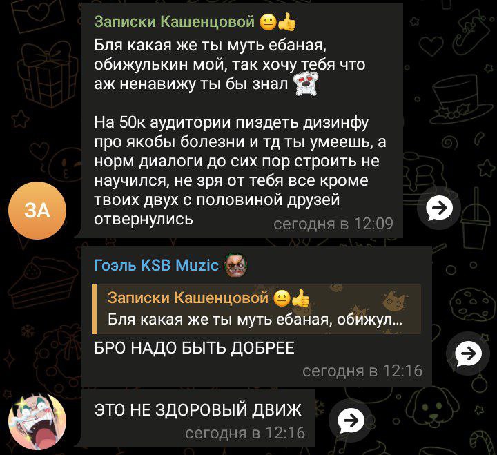 Как же в точку. Уж кашу не хочу хвалить, но взял бы с него пример ей богу. Один раз ответил на всю её шизу, и то чисто для личного успокоения, не читал ее канал на стримах, никак не пиарил и тд. Итог: пострадала хуйней ещё месяца 3, поняла, что не может от него питаться и "неожиданно" начала шликать на поеха и хряка. Очень правильно сделал, оставив ее без внимания. Таких шизичек не надо разъебывать, они сожрут себя сами с потрохами, если никак не реагировать.