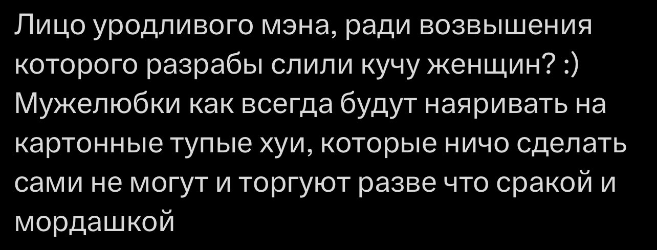 >>6207025 Местные поехавшие потому что сами вайфуебки, это как среди чушла есть чулочники, защищающие наличие кунов в игре, только в чушином загоне таких гонят ссаными тряпками, а на женской доске вайфуебки диктуют линию партии (партия однополой любви)
